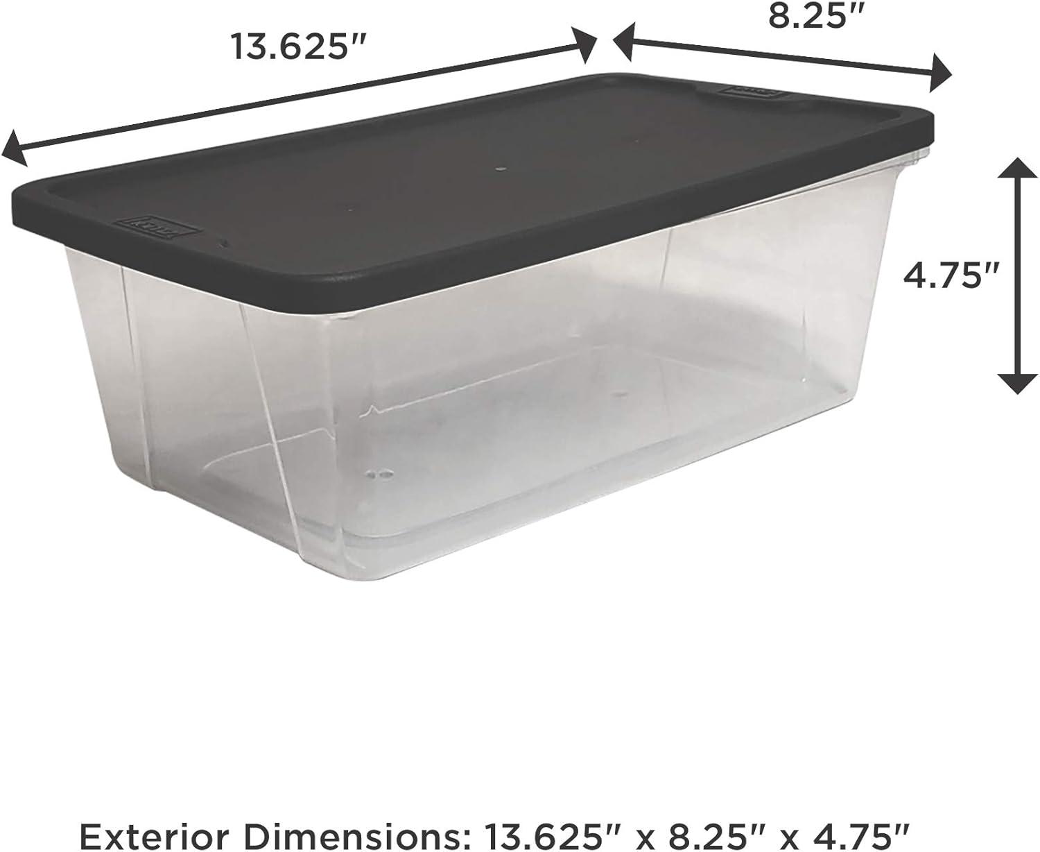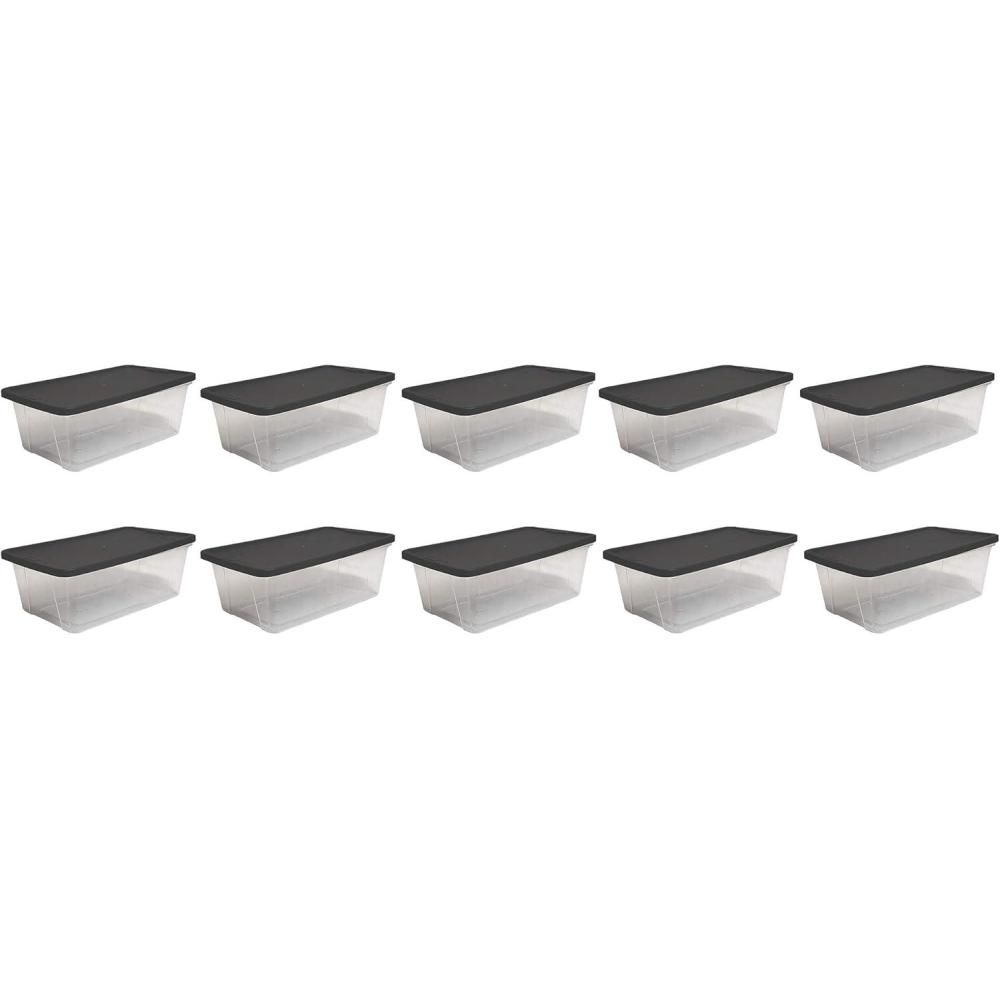 Stop sweating the small stuff, and organize it instead. Perfect for shoes, art supplies, gardening accessories, or any other tiny tools, this pack of 10 Homz Snaplock Extra Small 6-Quart Clear Storage Container will ensure your daily go-to's are easy to find and within reach. Pack up or organize a bathroom or closet with ease using this 10-pack of extra small storage containers. Each tote is crafted from clear plastic so your belongings will be easy to spot when you need them. A stylish and functional gray snaplock lid ensures your things will stay safe during a move or prolonged stay in storage. When you're finished using them, save space with the modular, stackable design of these totes. The pack of 10 bins nestle into each other for optimal space utilization.